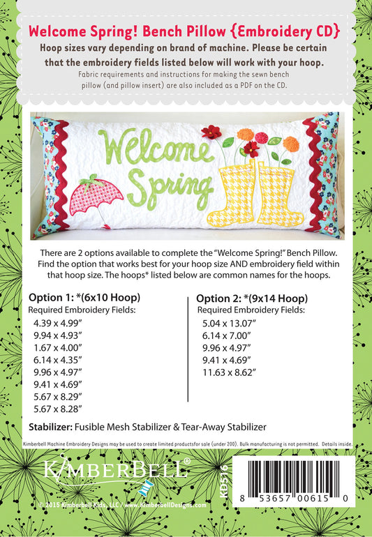 Kimberbell Welcome Spring!, Bench Pillow Machine Embroidery CD