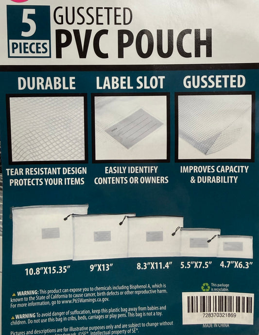 5 Piece Gusseted PVC Pouches