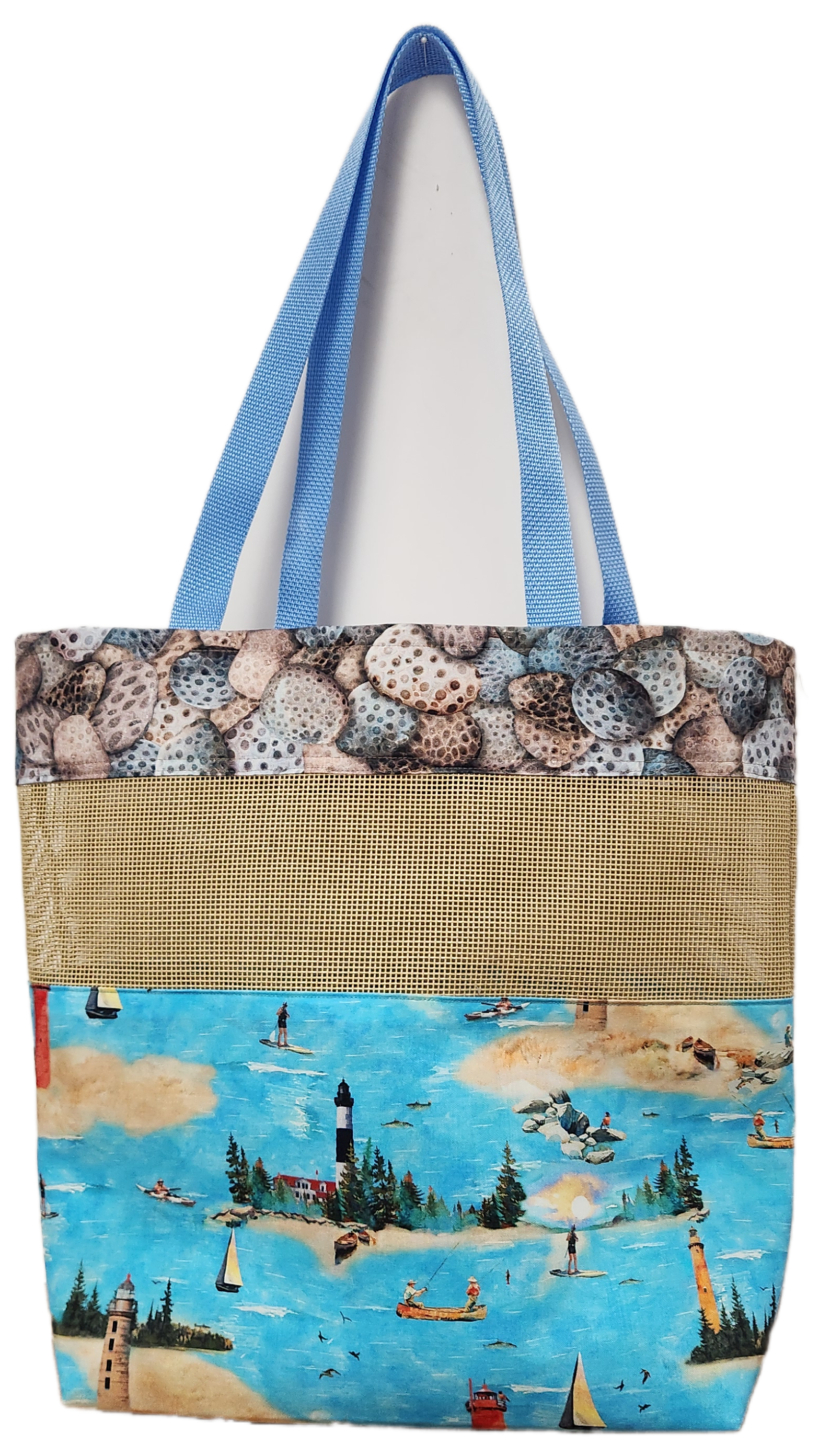 This versatile tote bag allows you to carry everything from groceries to beach essentials with ease. Durable and spacious, it's the perfect companion for any adventure. It features exclusive fabrics from the exclusive 2025 All Michigan Shop Hop.